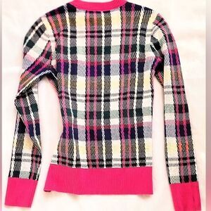 Charter Club Pink Contrast-Trim Plaid Sweater Size XS. Pit To Pit-18 Waist-17 Length-24.