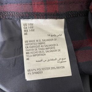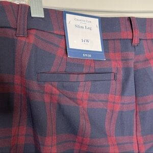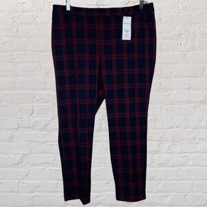 Charter Club Plus slim leg red and navy plaid pant, NWT, 14W