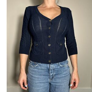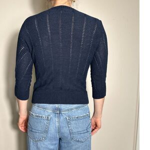 Charter Club Preppy Blue Crochet Short Sleeve Top Size SP