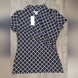 Charter Club Printed Blouse Top Womens Short Sleeve, New