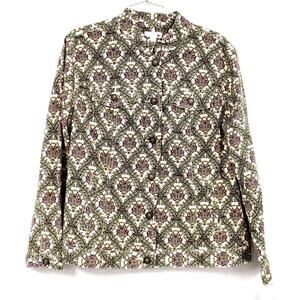Charter Club jacket in a great geometric print of olive and magenta on beige; NEW with tags, $75.