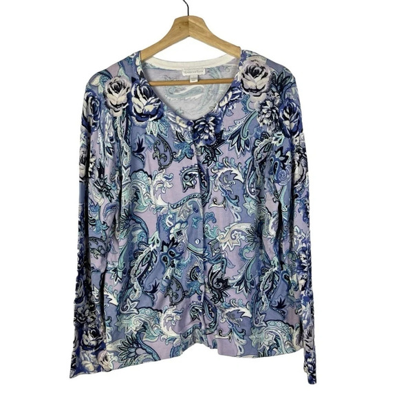 Charter Club Purple & Blue Paisley Button Down Cardigan Sweater L