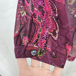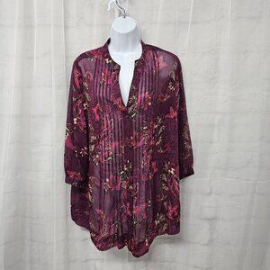 Charter Club Purple Sheer Blouse Paisley Floral Pintuck Boho Peasant 0X