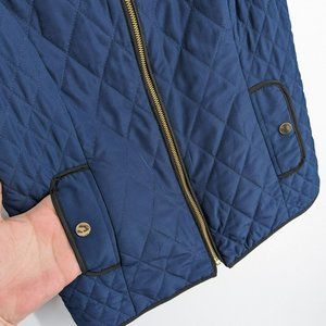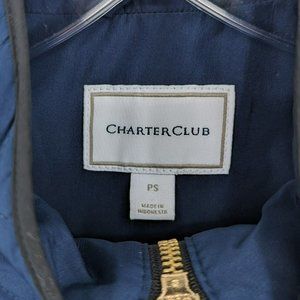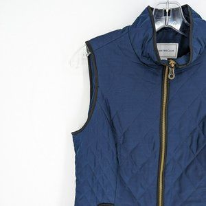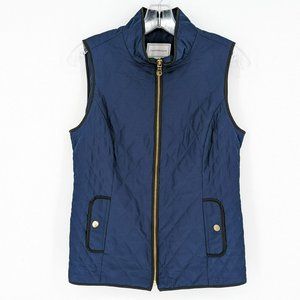Charter Club Quilted Puffer Vest Petite S Navy Blue Black Gold Zip Elastic Back