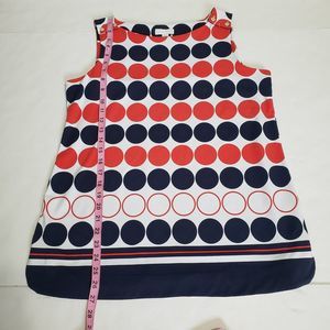Charter Club Tunic Tank Blouse Polka-dot Red White and Blue. Sleeveless Tank. Gold-toned buttons on shoulders. Pullover. 92% Nylon 8% Spandex