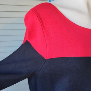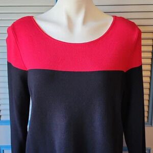 Keywords: Charter Club sweater, red and black colorblock, size large sweater, rayon blend sweater, long sleeve top, comfortable knitwear, good used condition, versatile casual chic.
