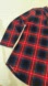 Stylish plaid top with a V-neck. Features vibrant red and blue colors. Perfect for casual wear.