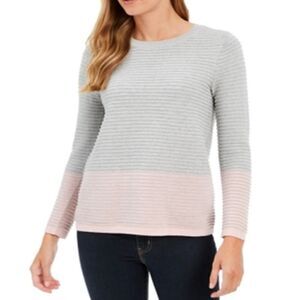 Charter Club Ribbed Colorblock Ottoman Sweater Gray Pink Medium