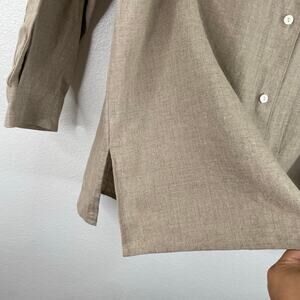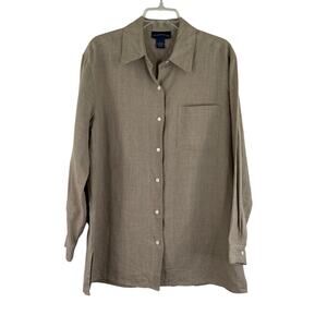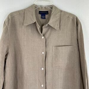 Charter Club Sand Brown Button Down Blouse 100% Linen Women's Medium