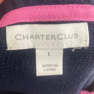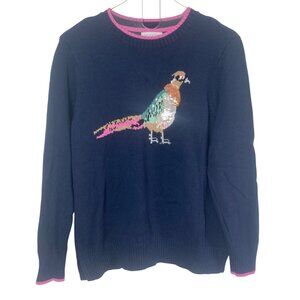 Charter Club Sequin Pheasant Bird Sweater Large Navy Blue Festive Forestcore