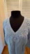 Elegant sky blue Linen tunic with delicate embroidery. Features a V-neck style.size m