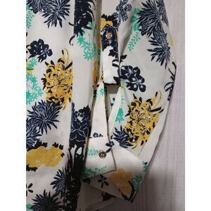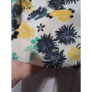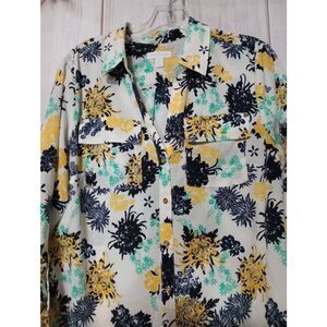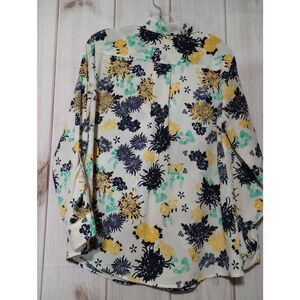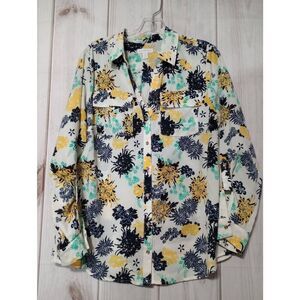 Charter Club Shirt Ladies Medium Semi Sheer Button Front White Navy Yellow