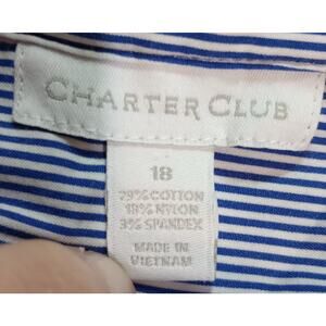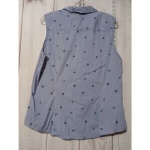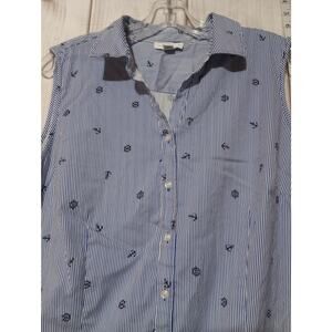 Charter Club Shirt Womens 18 Blue White Nautical Anchor Stripe Sleeveless Button Up Top