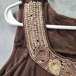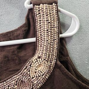Charter Club Shirt Womens 1XL Brown Beaded Neck Stretch Sleeveless Tank Top