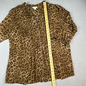 Charter Club Shirt Womens 2X Brown Sheer Leopard Animal Print Button Front Blouse Top