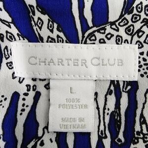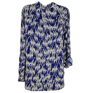 Charter Club Shirt Womens Large Giraffe Safari Print Button Blue Long Tab Sleeve