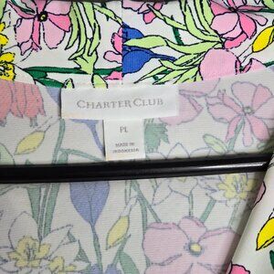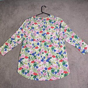 Charter Club Shirt Women's Petite L Floral Art Stretch 3/4 Sleeve Tunic Top