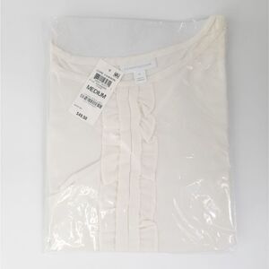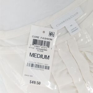 A delicate ruffle on the front offers feminine charm with this Charter Club top. Fitted Crewneck Ruffled detailing at front Polyester/spandex Machine washable Imported Web ID: 11258158Size: Womens M Condition: New With Tags