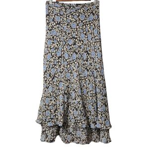 Charter Club Silk Blue Maxi A-Line Skirt with Ruffled Tiers