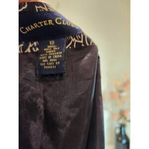 pgrade your wardrobe with this Charter Club silk wrap skirt in an elegant black and gold floral print. Designed with a 30" adjustable waist and a 21" length, this versatile wrap style flatters your silhouette with a secure button closure and flowing drape. Crafted from 100% silk with an acetate lining, it offers a lightweight and luxurious feel, perfect for office wear, brunch, or evening outings.