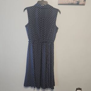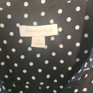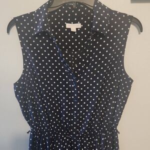 💚 Charter Club Size 10 Navy Blue White Polka Dots Collared Sleeveless Dress