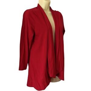 Red knit open front jacket top with 3/4 sleeves