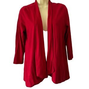 Charter Club Size L Red Knit Open Front Jacket Top 3/4 Sleeves Basic
