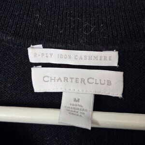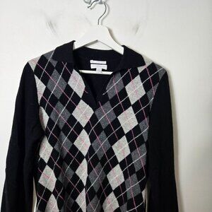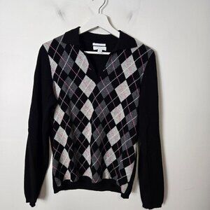 Charter Club Size M 2-Ply 100% Cashmere Argyle V-Neck Collared Sweater Black