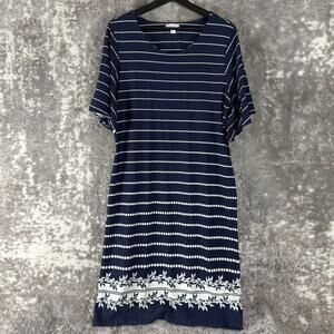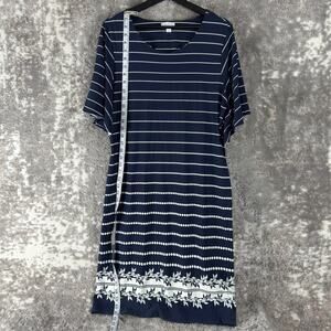 Charter Club Size XL Striped Midi Shift Dress Navy Scoop Neck Short Sleeve