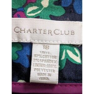 The Charter Club Skirt in size 18 features a bright blue and green floral pattern like a field of vibrant flowers, making it perfect for various occasions such as travel, wedding, party, casual wear, and work or business attire. Made from a lightweight canvas fabric with spandex and cotton material, this knee-length A-line skirt is lined and has a slit for added style. The skirt is suitable for all seasons, particularly in spring and summer, and its vibrant colors and whimsical design cater to a wide range of themes including festival, art, flower, and colorful. Easy to care for with machine washable instructions, this skirt from Charter Club is a delightful addition to any woman's wardrobe.