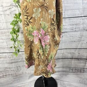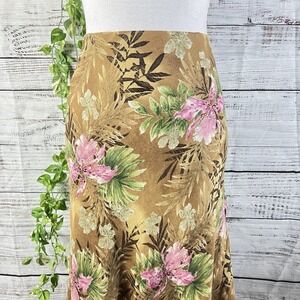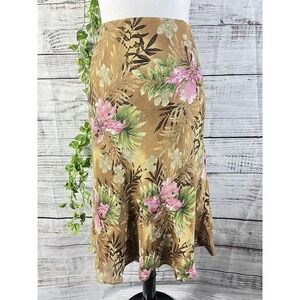 Charter Club Skirt size 16 Brown Green Pink Floral Linen Silk Bias A Line Knee