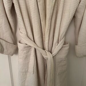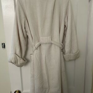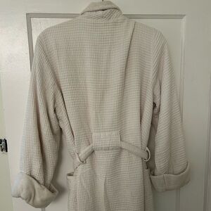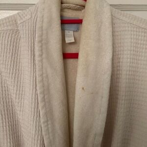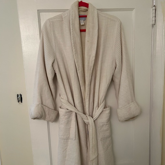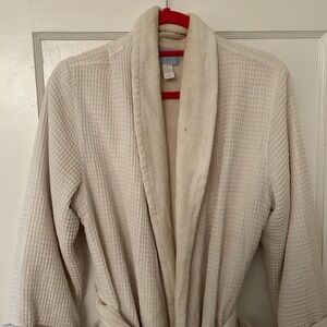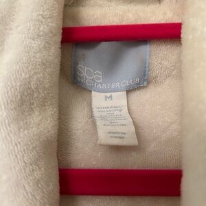 Elegant cream robe by Charter Club. Features vibrant pink trim. Ideal for comfort and style.