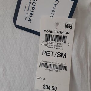 Charter Club Split Neck Bright White 100% Supima Cotton Top Roll Tab