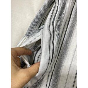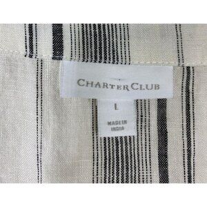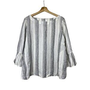 Charter Club Stripe Linen Top Women L 3/4 Bell Sleeve Lagenlook Gray White Boho