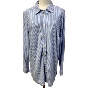Charter Club Striped 100% Cotton Button Up Shirt Womens 1X Soft Preppy Coastal