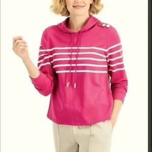 Charter Club puts a nautical spin on a classic hoodie pullover with graphic sailor stripes. Measurements are laying flat and approximately  Pit to Pit:20 Total Length:24 Sleeve:24 Bin #23 Closet Policies: ❌ No trades, No holds ✅ I consider all reasonable offers 🛍Bundle items to save on SHIPPING 📫It is my goal to ship same day or next business day ❓If you have questions please ask!