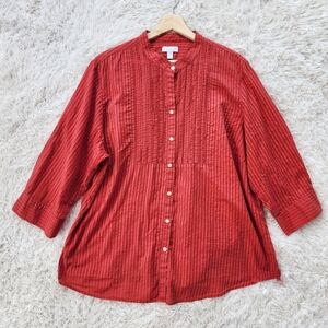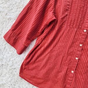 Charter Club Striped Pintuck Button Front Blouse. Size 20W with no stretch. 100% cotton. 3/4 roll tab sleeves with button cuffs. Pintuck detail. Excellent, prowned condition. No flaws.