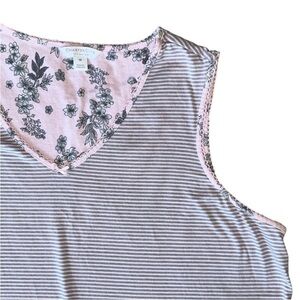 Comfortable sleeveless sleep tank Nightgown. Features a subtle striped pattern with inside floral detail at the neckline.