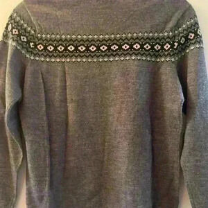 NWT Charter Club Sweater. Size Small. Merino Wool. Gray with pink and black pattern #351K L 21 P 18