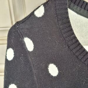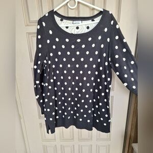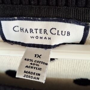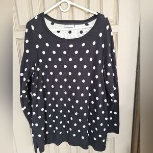 Charter Club Sweater Plus Sz1X Blk/Wht Polka Dot Long Sleeve Knit Cotton Blend