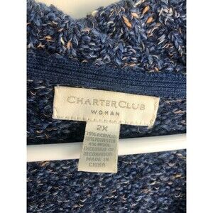 Charter Club Sweater Sz 2X Blue Chunky Knit Shawl Collar Pullover Solid Womens