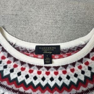 Charter Club Sweater Women L Ivory Cashmere Fair Isle Blouson Sleeve Holidays