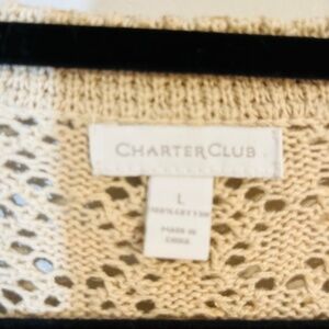 Charter Club Sweater Women L Tan Floral Cardigan Retro Western Boho Festival 80s