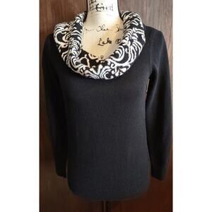 Charter Club Sweater Womens PM Petite Medium Cowl Neck Black Mob Boss Metallic