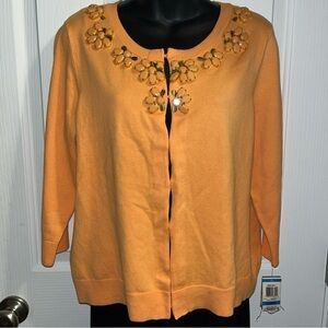 Charter Club Sweater Womens Size XL Orange 3/4 Sleeve Embellished