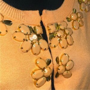 This Charter Club sweater is a women's size XL in a vibrant orange color with 3/4 sleeves. It features beaded and sequin embellishments, a round neckline, and a cardigan style. The material composition includes nylon, rayon, and cotton, and it is recommended to be hand washed. This sweater is perfect for adding a touch of sparkle to your outfit.