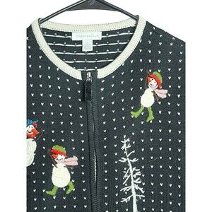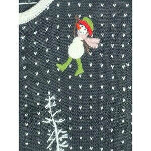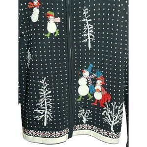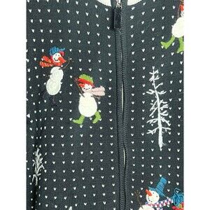 Charter Club Sweater Women’s Small Black Winter Embroidered Embellished Snowman