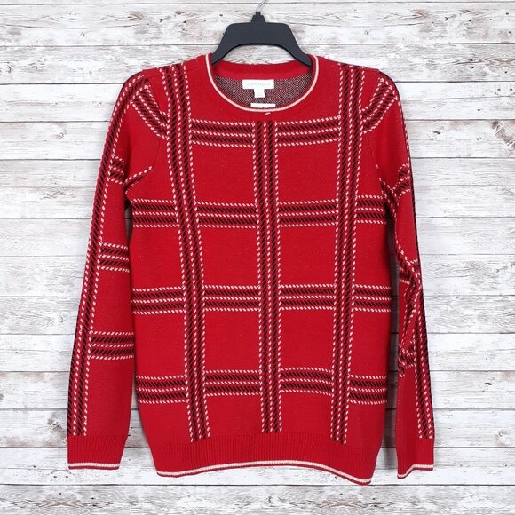 Charter Club Sweater XS Red Black Plaid Christmas 200A