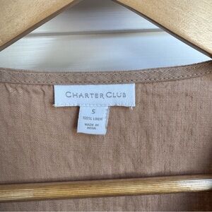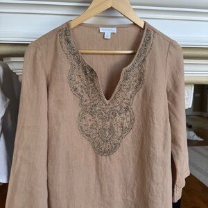 Charter Club Tan Linen Beaded Front Tunic Top Size Small