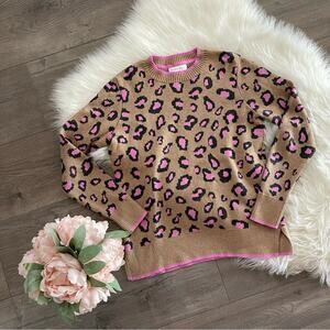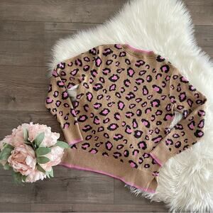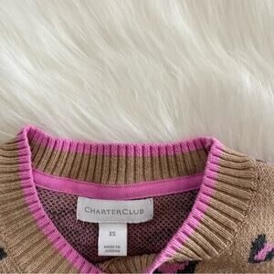 Charter Club Tan & Pink Leopard Print Sweater XS